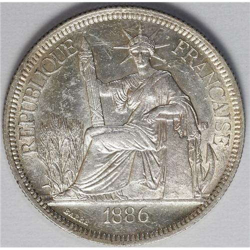 French Colonial Piastre 1886-A, KM5, lustrous UNC with