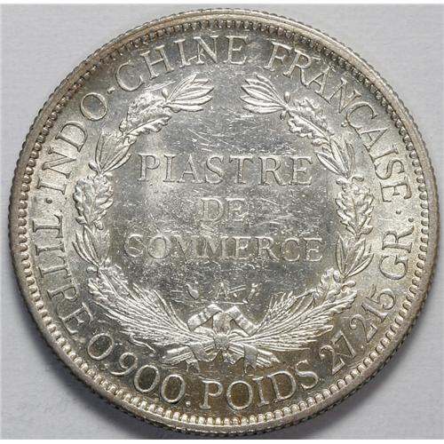 <B>French Colonial Piastre 1886-A, </B></I>KM5, lustrous UNC with subtle golden toning in the legends, typical small contact marks, but very scarce grade for this early date.