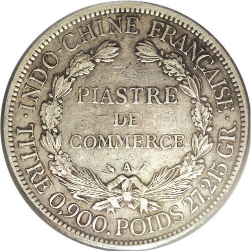 <B>French Colonial Piastre 1890-A, </B></I>KM5, VF35 PCGS, an evenly worn example of this very rare date with light gray patina and typical surface marks. Always one of the most coveted coins in the "Trade Dollar" series.