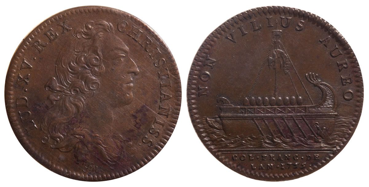 Jeton 1755. Breton-515. Copper. Original. Used extensively in French Colonial Canada from 1755 on. ICCS graded Choice Extremely Fine-45.