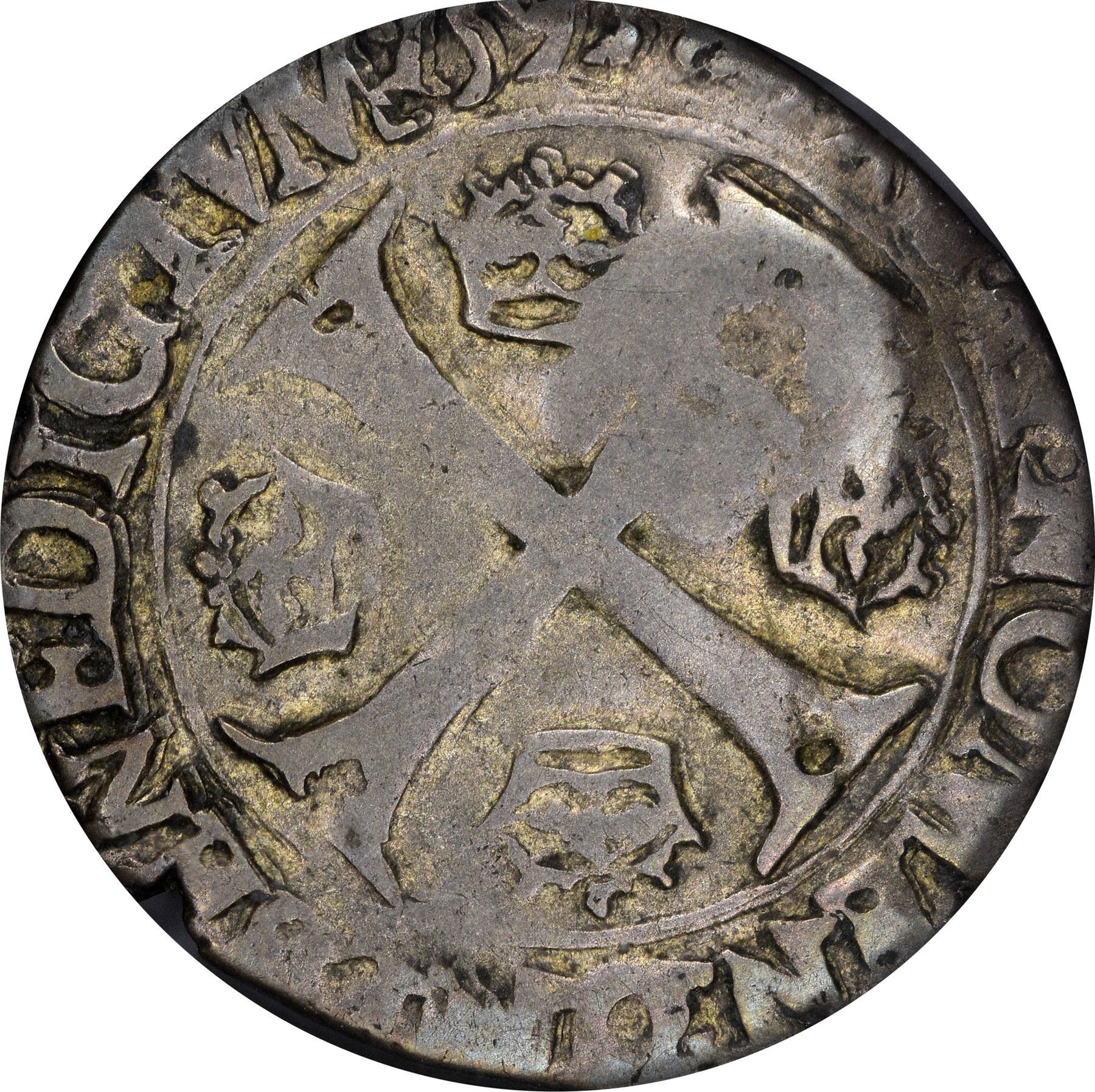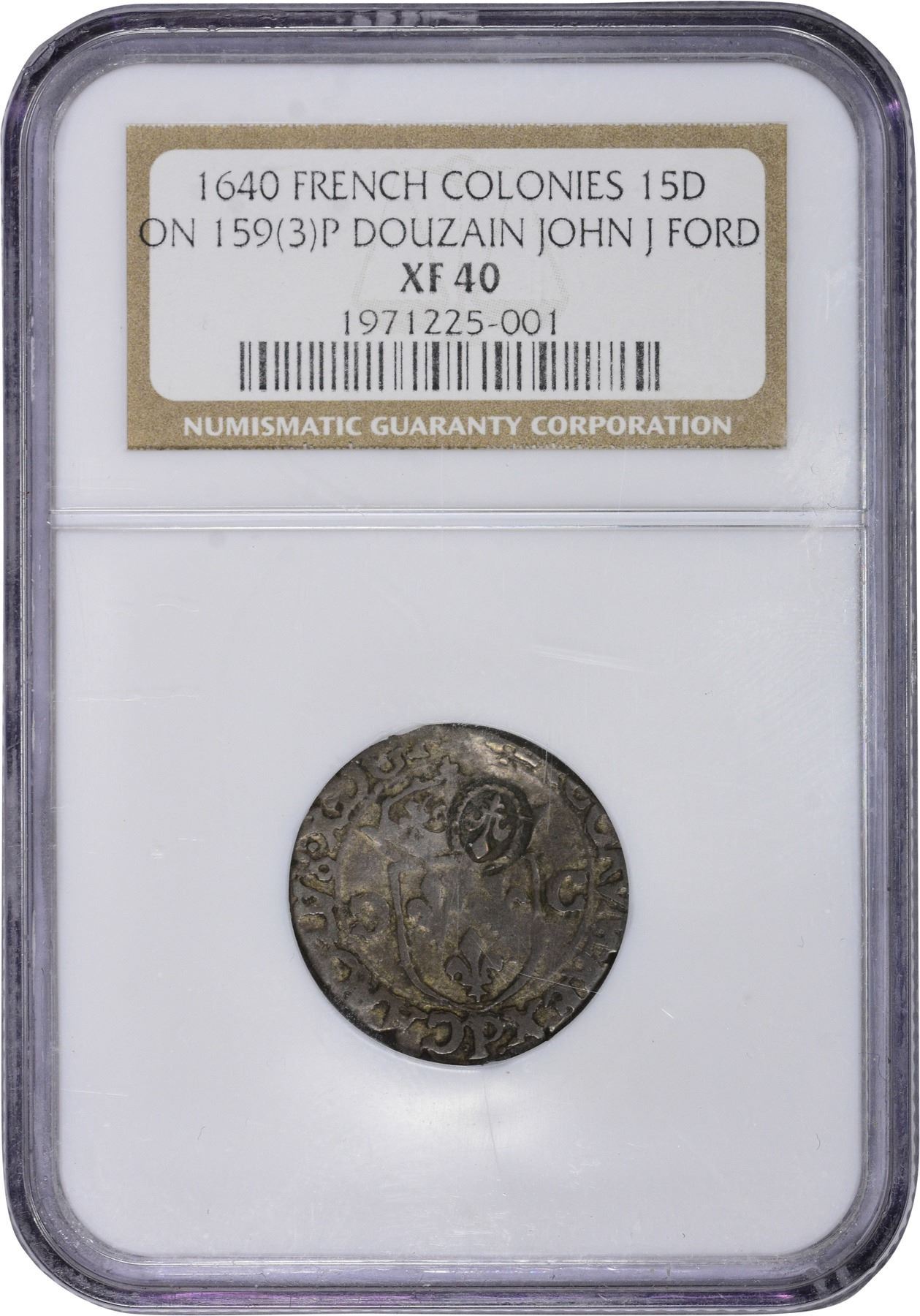 Title: French Colonies. 1640 Counterstamped Billon Douzain of 159(3)-P. Dijon Mint. EF-40 NGC.
