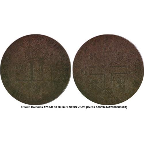 French Colonies 30 DENI 1710-D VF20 SEGS<Br>Moderate toning and corrosion Charlton 300.00