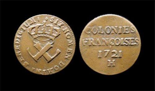 French Colonies, 9 deniers 1721H. EF+ or better. Scarce in this condition.