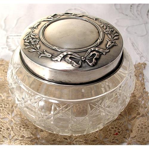 French Crystal box, probably Baccarat. Has draws of flowers in the silverplated cover. In perfect conditions, from the bginning of 20 th. Century.