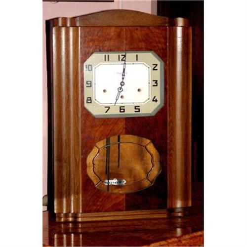Manufactured by Horlogerie, Vedette Soc Fab LA. circa 1935. Dial and movement are Marked . 8 day movement, Enclosed spring barrels, movement runs very well. This item has been totally dismantled ( this is the reason you don't see the pendulum at picture) and restored to excellent conditions and oiled, 100 % original complete with original key , ready to run for another 100 years.