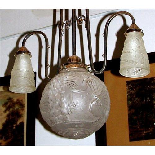 <tr><td>Title:French Deco Glass Chandelier Signed Muller Freres</td></tr>