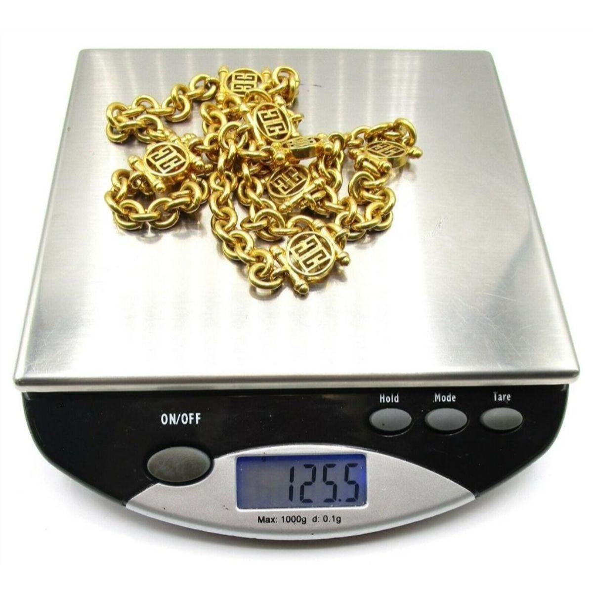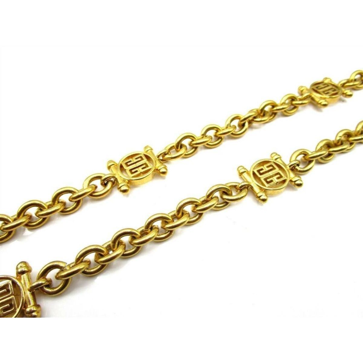 Rare French designer GIVENCHY gold tone metal 29" vintage chunky logo panel link necklace.