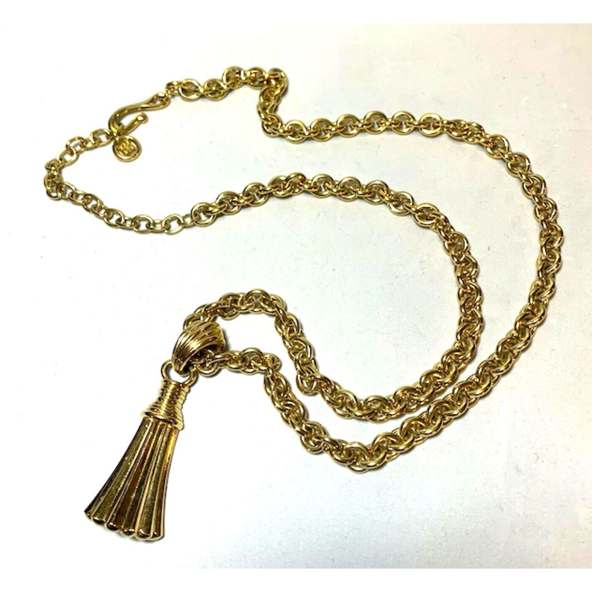 French designer GIVENCHY Paris gold tone 32" necklace with large 2 3/4" X 1" tassel pendant, on heavy chain link with designer tag attached to clasp.Â