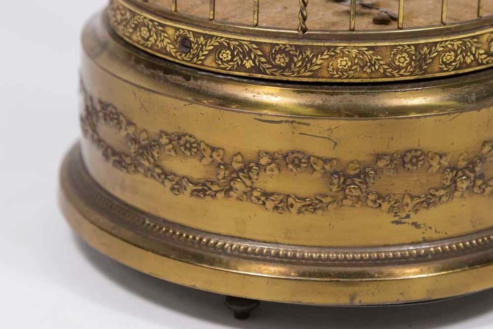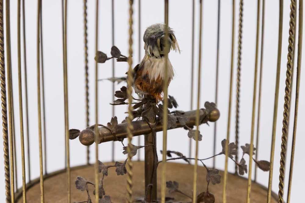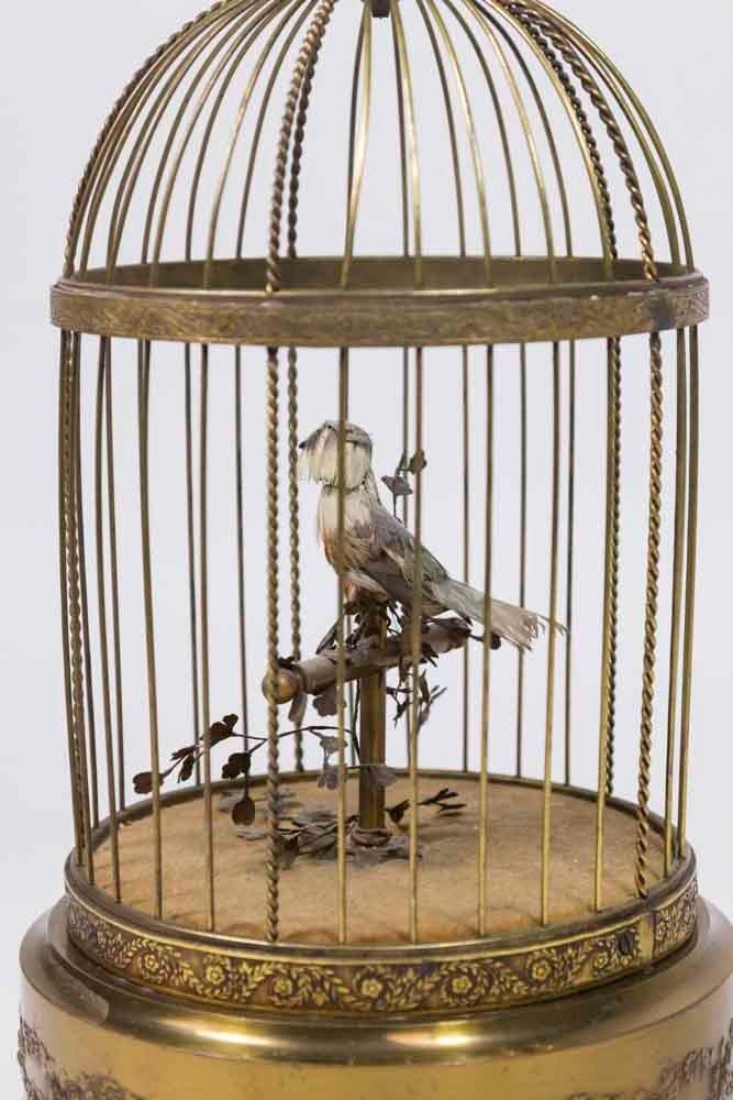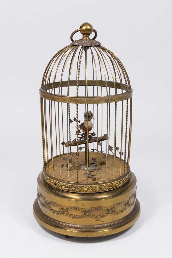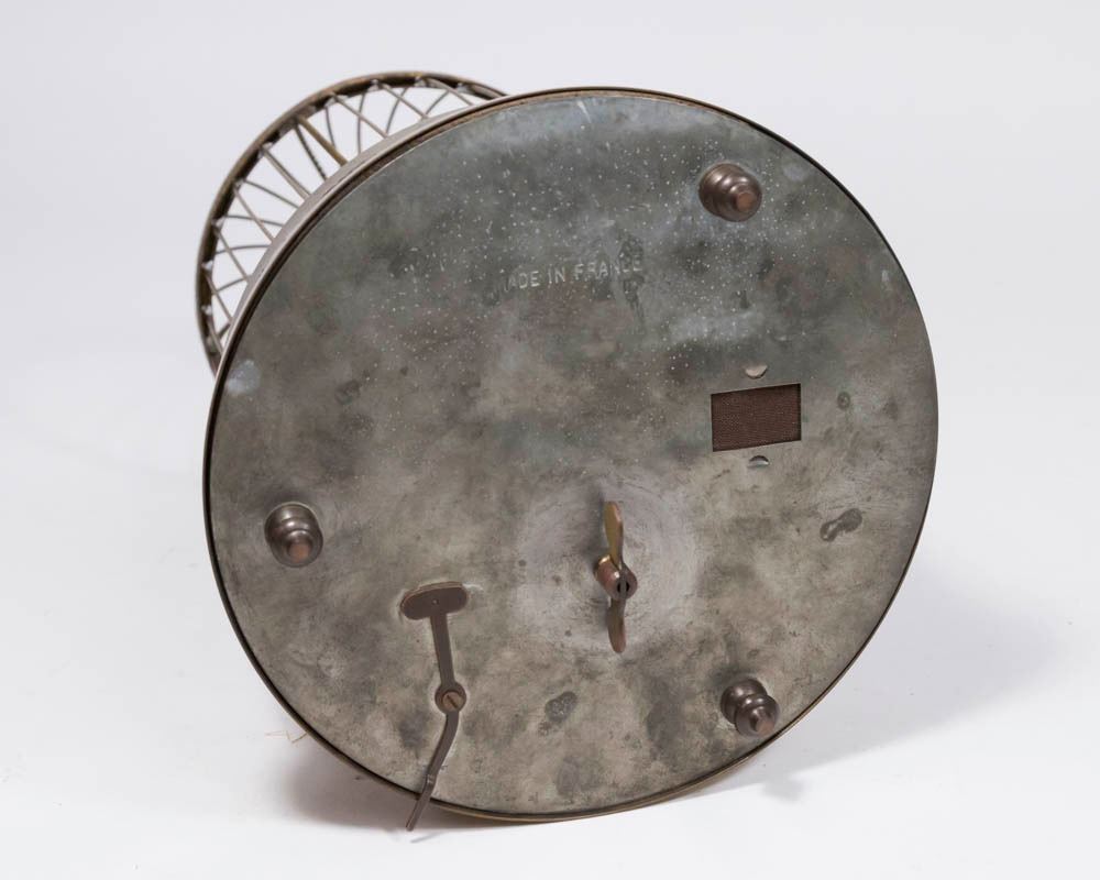 Stamped Made in France. Approx. 11 1/4" H. From an Edgewater, NJ estate. Works intermittently. Feathers worn. Dirty.