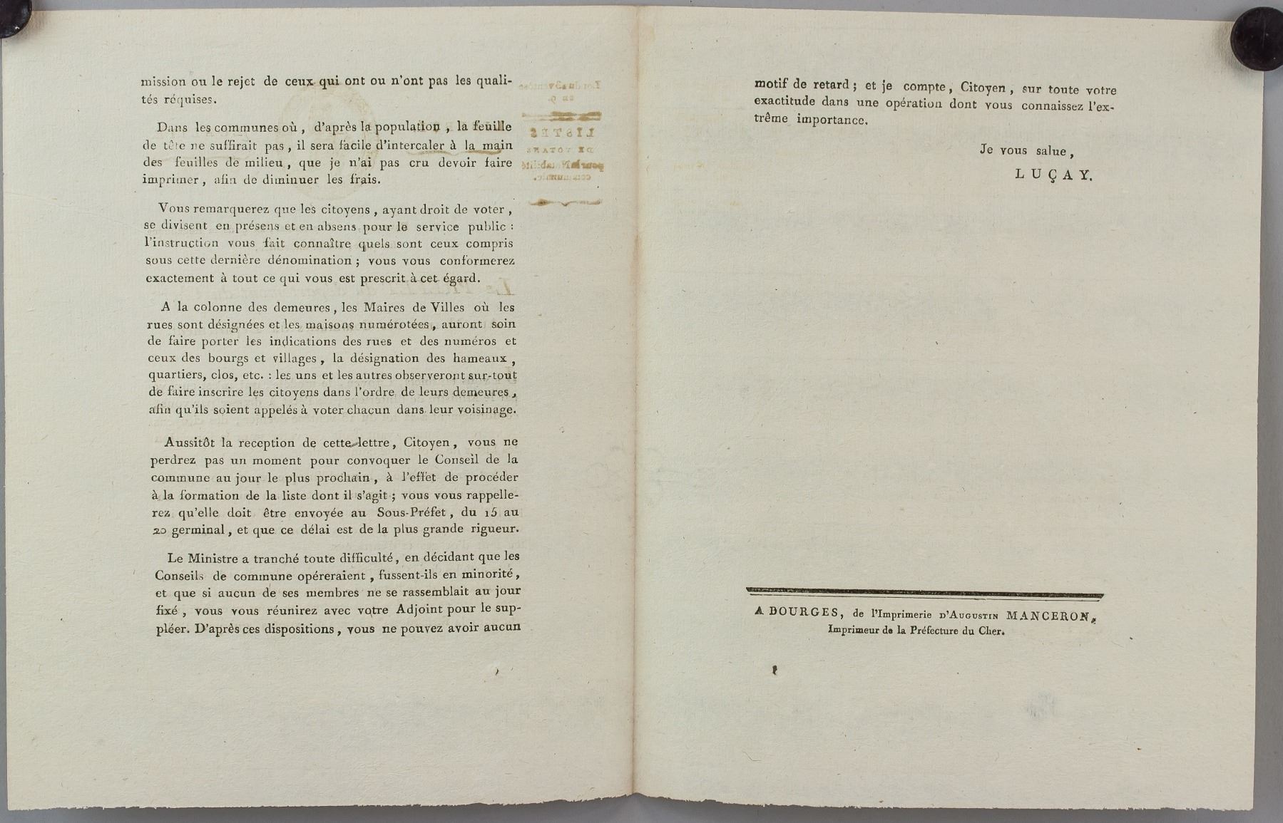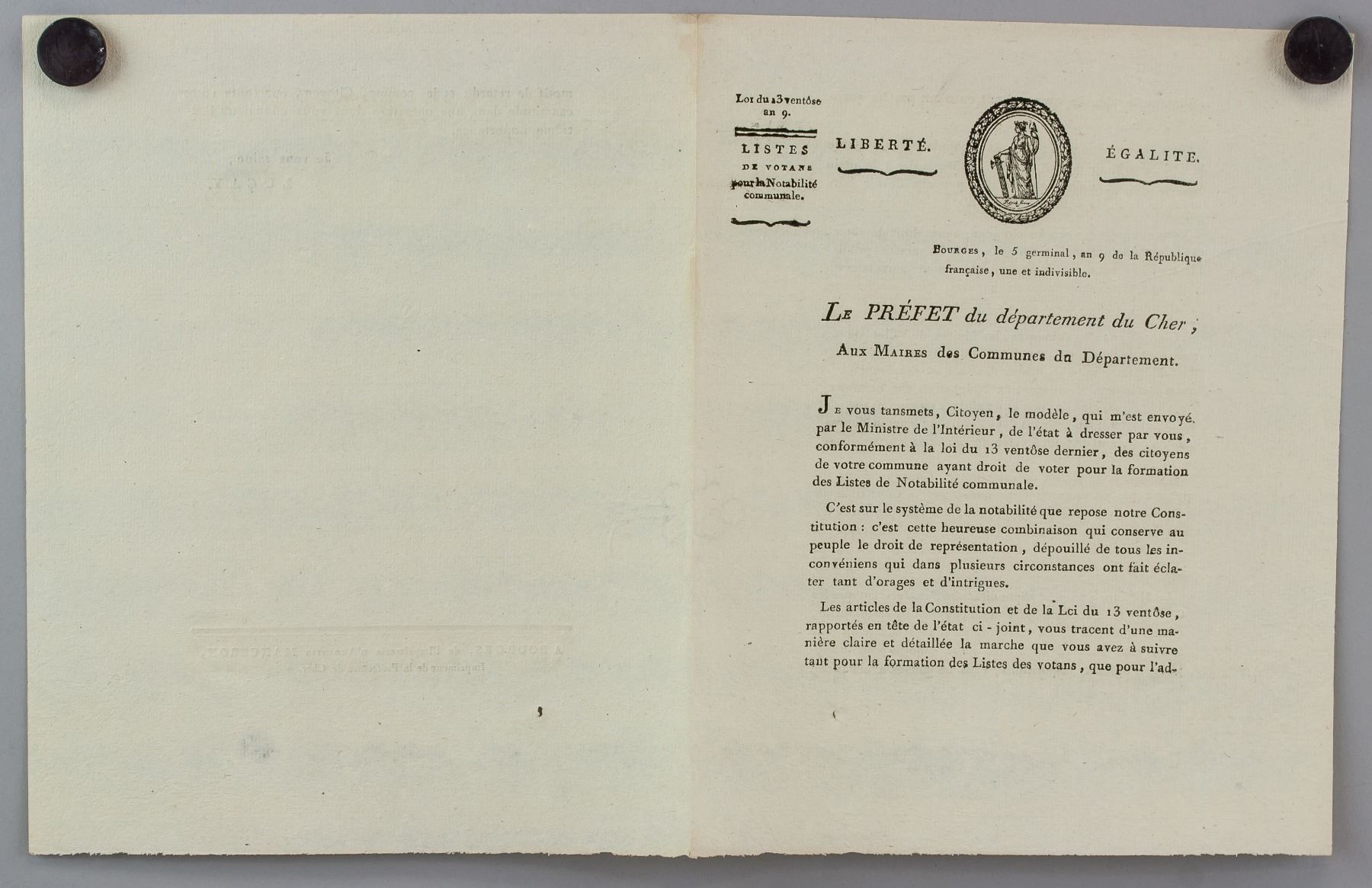 A vignette describing the election taking place in Year 9 in the French Republican Calendar during the Revolution. Very fine condition, 23.8 x 18.9 cm