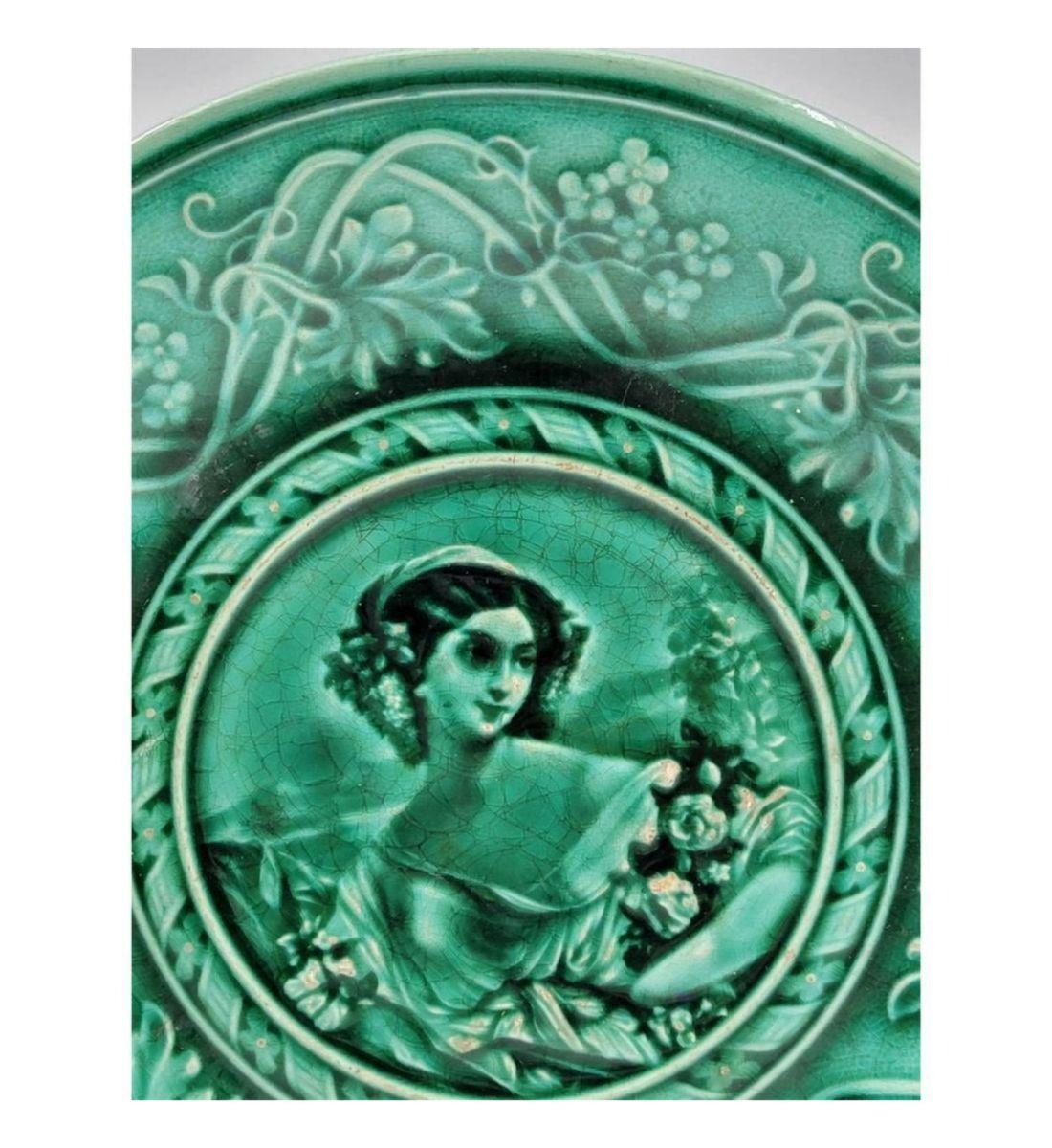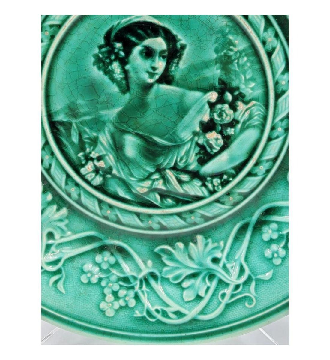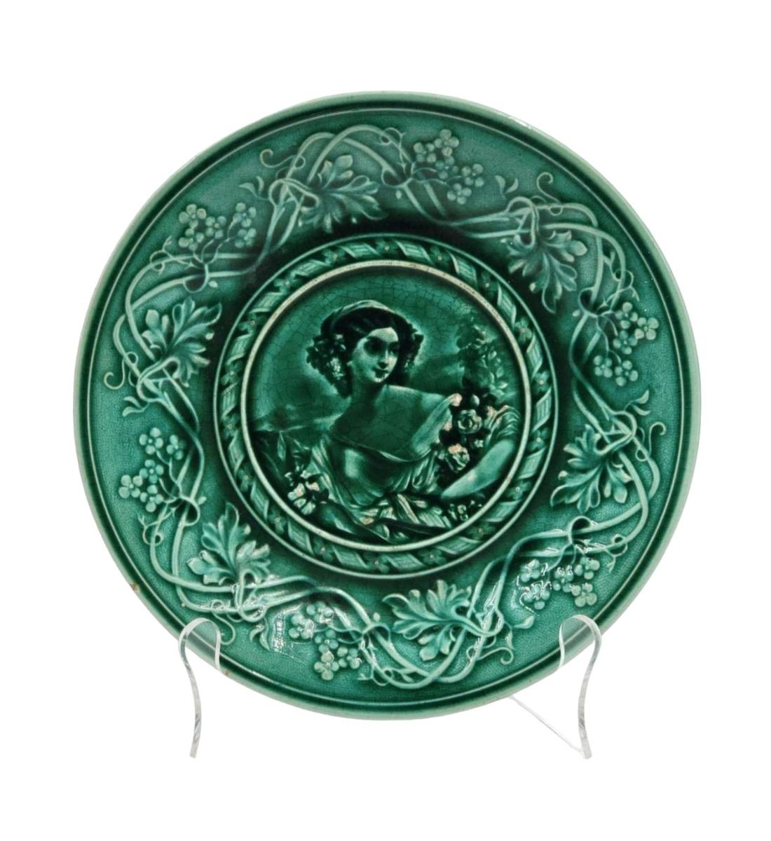 Emile Rigal 1860-85 Majolica Plate With A Portrait. Measure 9" Diameter. Provenance: One Person Private Estate Central Florida.