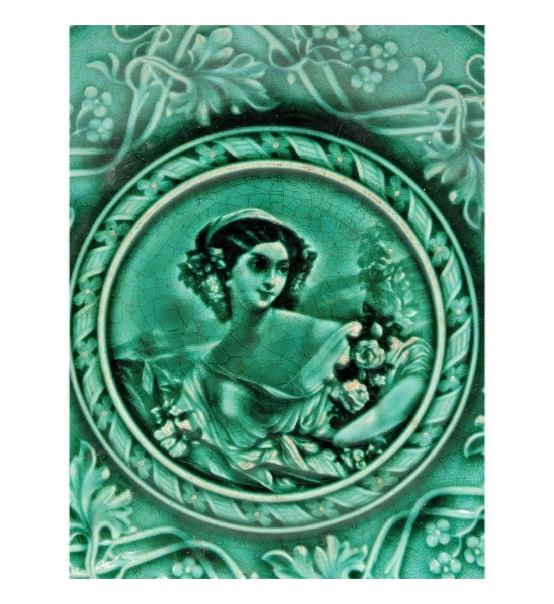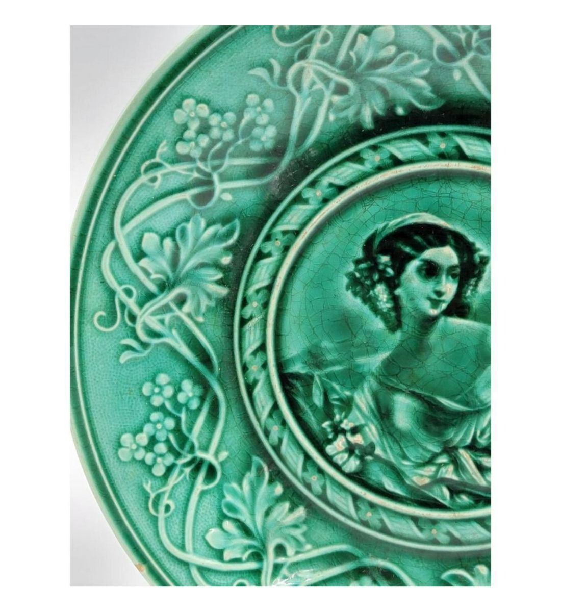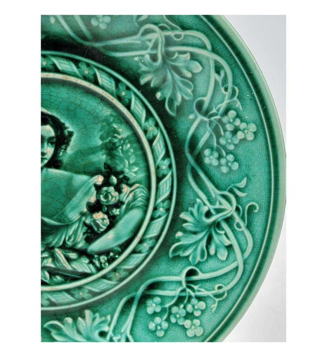 Emile Rigal 1860-85 Majolica Plate With A Portrait. Measure 9" Diameter. Provenance: One Person Private Estate Central Florida.