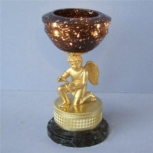 A Fine French Empire Ormolu or gilded bronze figural tazza with Porphyry bowl. French Empire, circa: 1800-1810. Measuring: 6.5" high. Weight: 8 pounds.