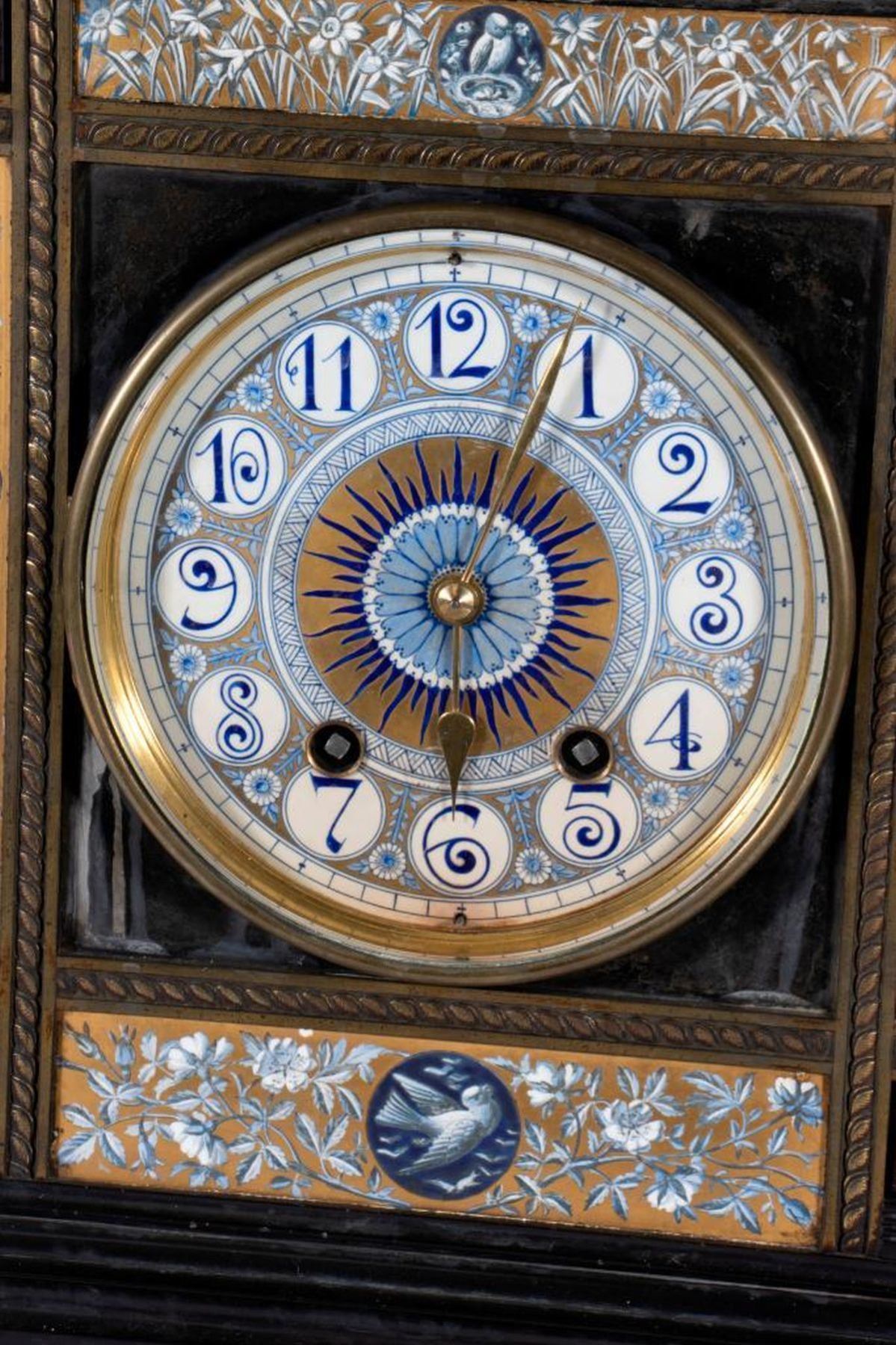 19th Century. The dial inlaid with floral enamel work. 17in. h. 11in. w. Condition: Very good. Clock works not warranted. SHIPPING NOTE: This is a heavy item.