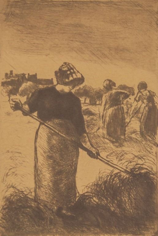 Etching on paper. Featuring women working in the fields. Sigend "C. Pissarro" to the bottom right, with "10/50" inscribed to the bottom left. 30 x 21 cm (11.7 x 8.3 inch).