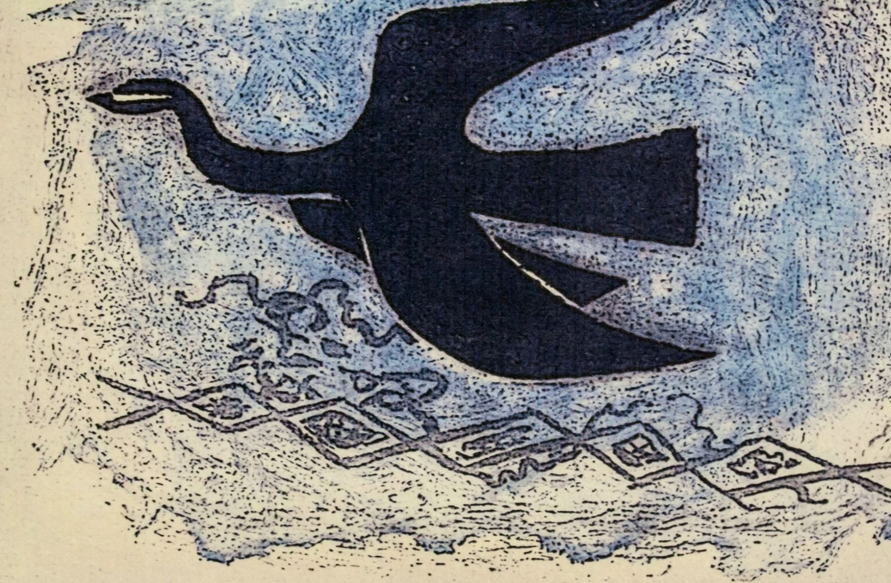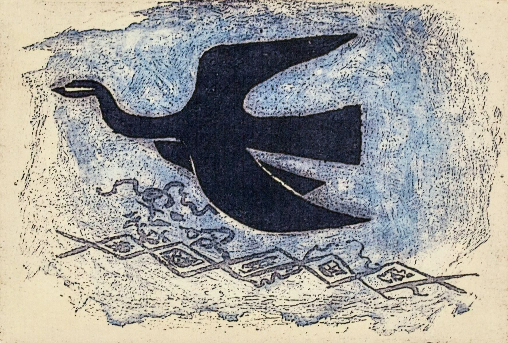 Linocut on paper. Featuring a flying bird. Signed G. Braque and inscribed E.A. in pencil on the lower right and lower left corner, respectively. Attributed to Georges Braque (French, 1882-1963). 21 x 30 cm (8.3 x 11.8 inches). PROVENANCE: Private European collection (Lisbon, Portugal)