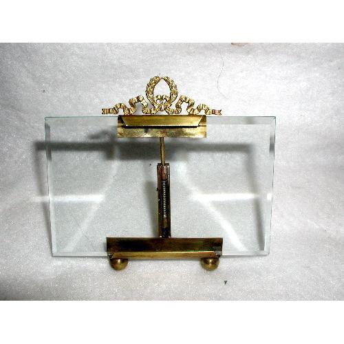 Unique bronze and beveled glass French frame C.1847,woman in long dress on the back with date. Bronze plates with wreath and flowing ribbon,center top and bottom,attach to a spring mechanism on the center back. Pull up and disengages. Tiny bronze feet and easal. This style mixes easily with other antique frames,gives a clean,yet old look and allows for floating a photo,if not as large as the overall dimension. Excellent condition. Measures 4 3/8L (with bevel) 2.75 (with bevel). Overall size 4 3/8 L X 4H.