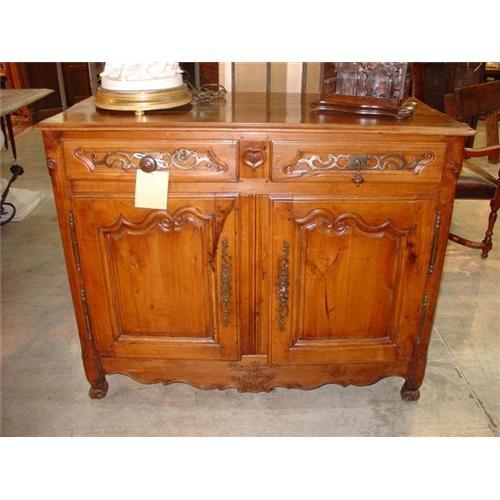 This is a fruitwood buffet from early 19th century France. The hardware is all pewter, and includes the characteristically French "drop" drawer knob on the right hand side. The style is Louis XV and it is in very good antique condition!