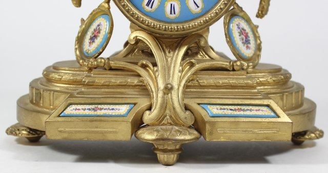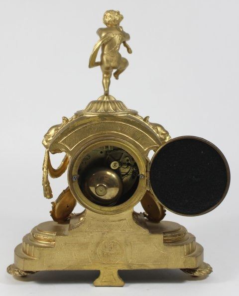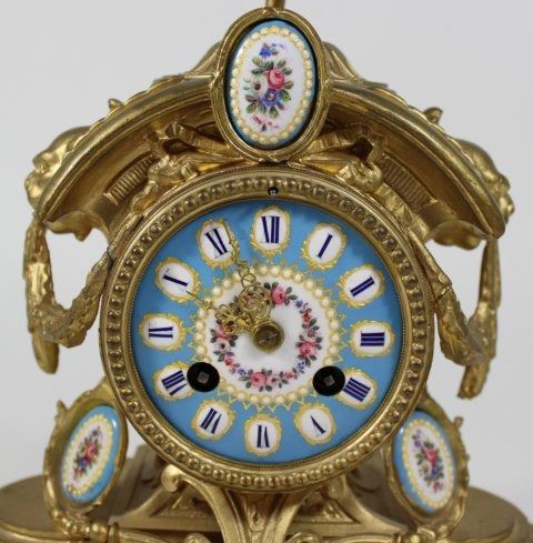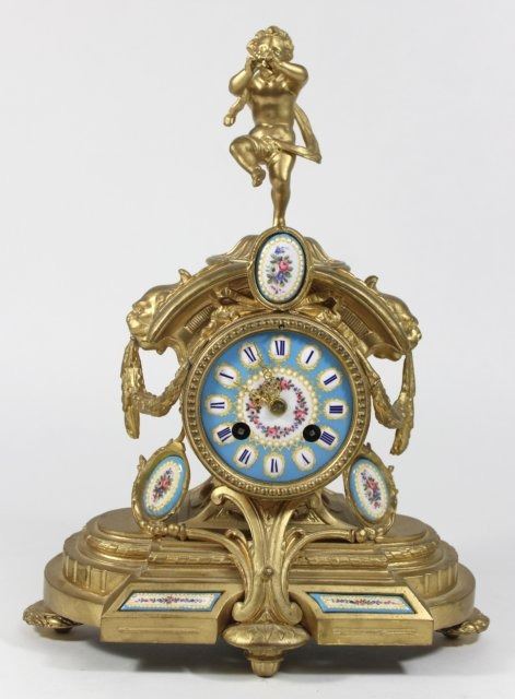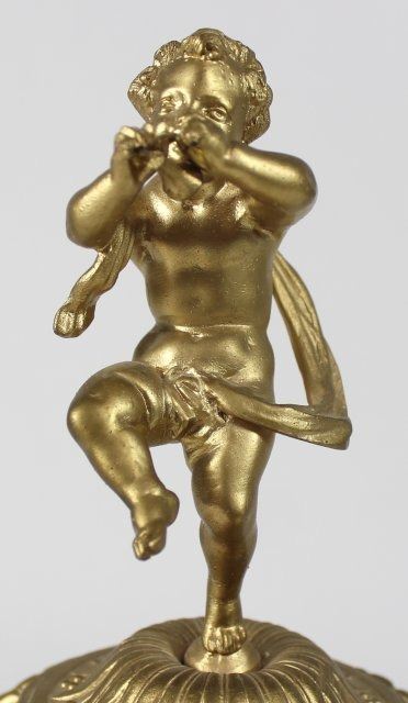With porcelain plaques and face. Cherub on top. Approx. 13 1/4" H.