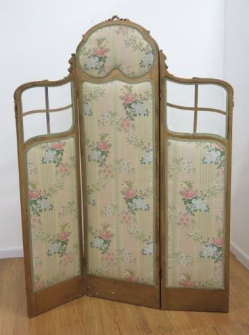 3 panel screen. Floral upholstery. Approx. 68 1/2" H x 52" W. (4126)