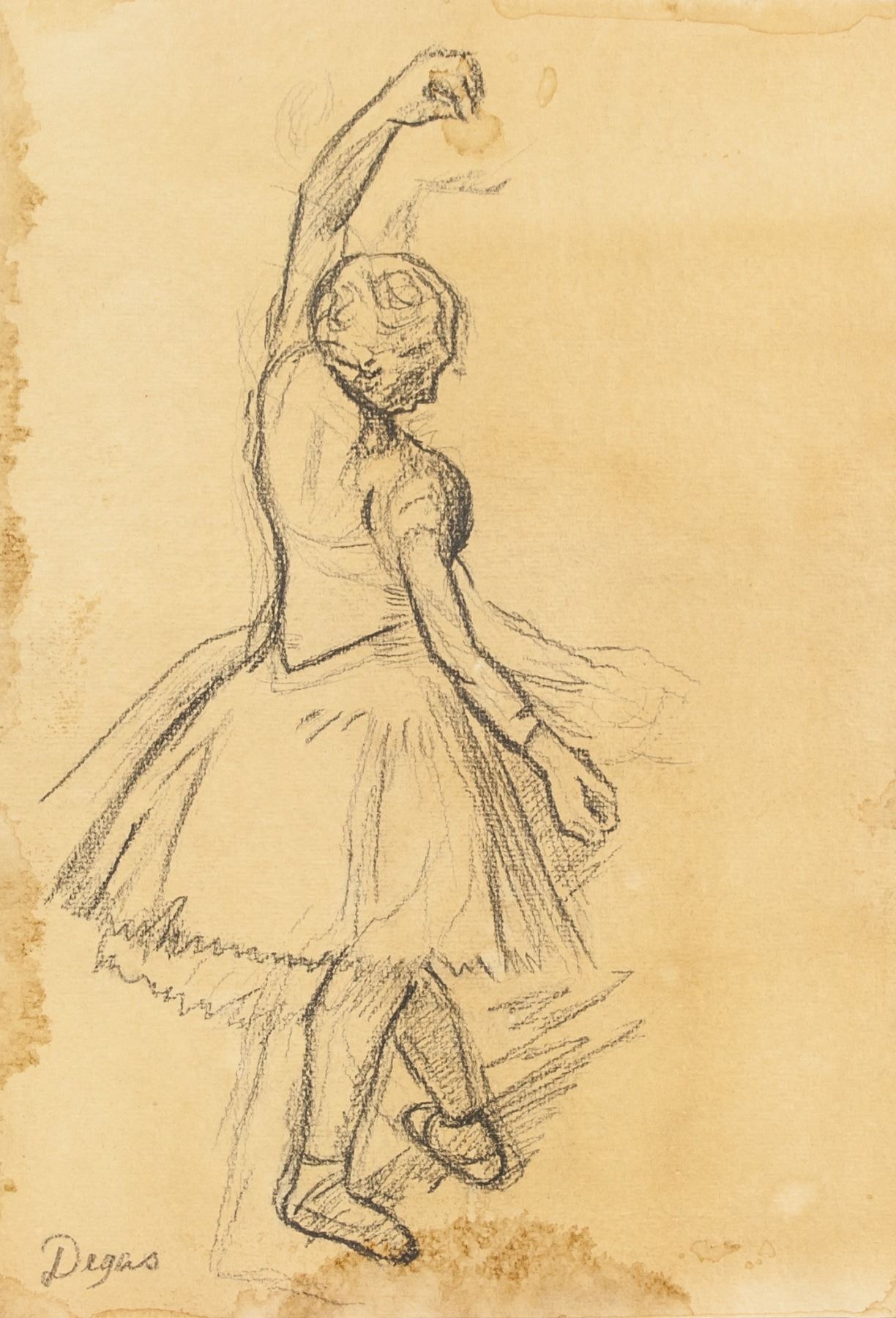 Graphite on paper. Study, featuring dancer. Signed Degas. 11 x 7.5 in. (27.9 x 19.1 cm). PROVENANCE: Private estate (Toronto, ON)