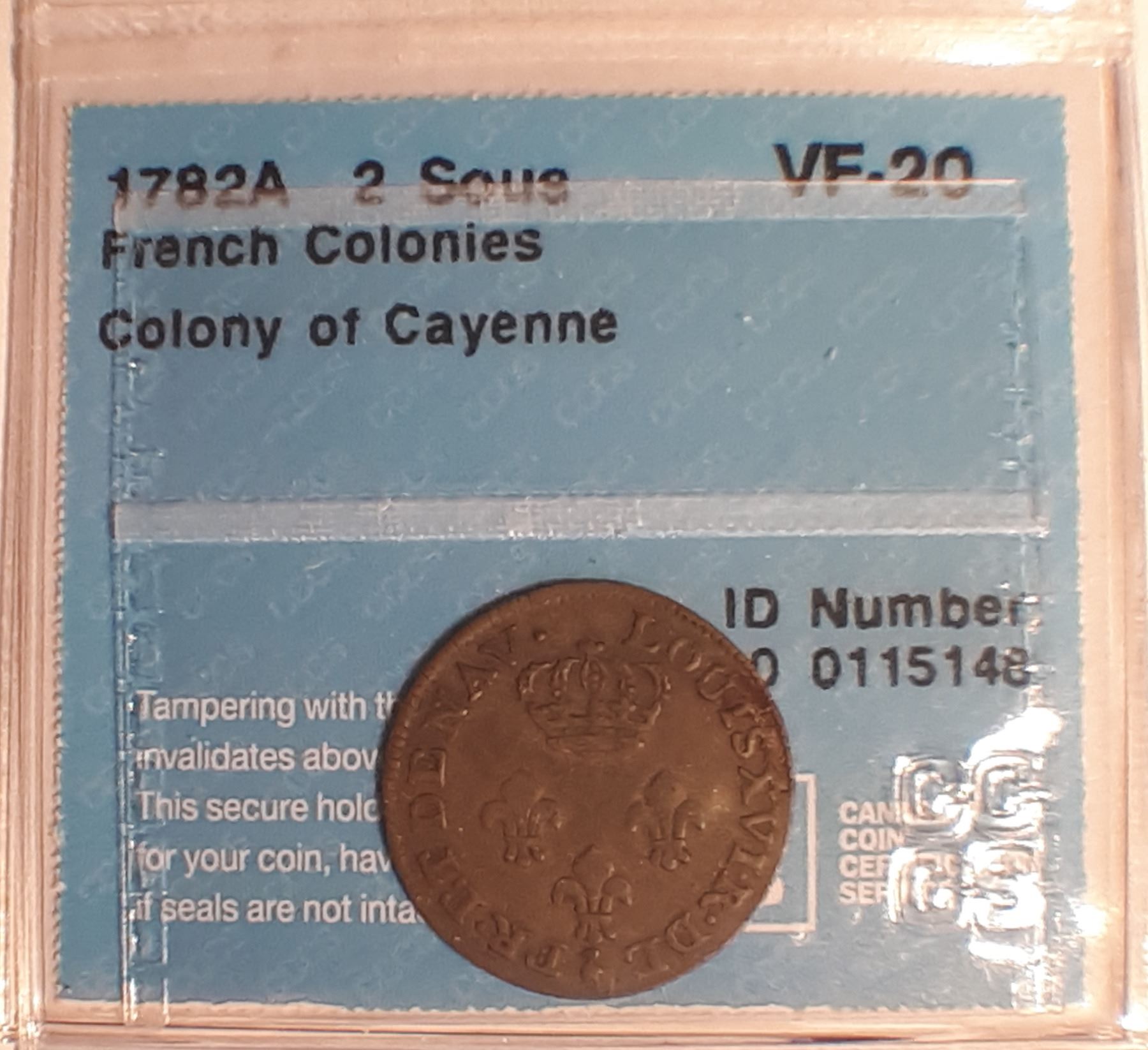 French Guiana "Cayenne" 2 Sous 1782-A VF-20 Certified CCCS