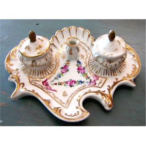 <tr><td>Title:French Handpainted Porcelain Double Inkwell</td></tr>