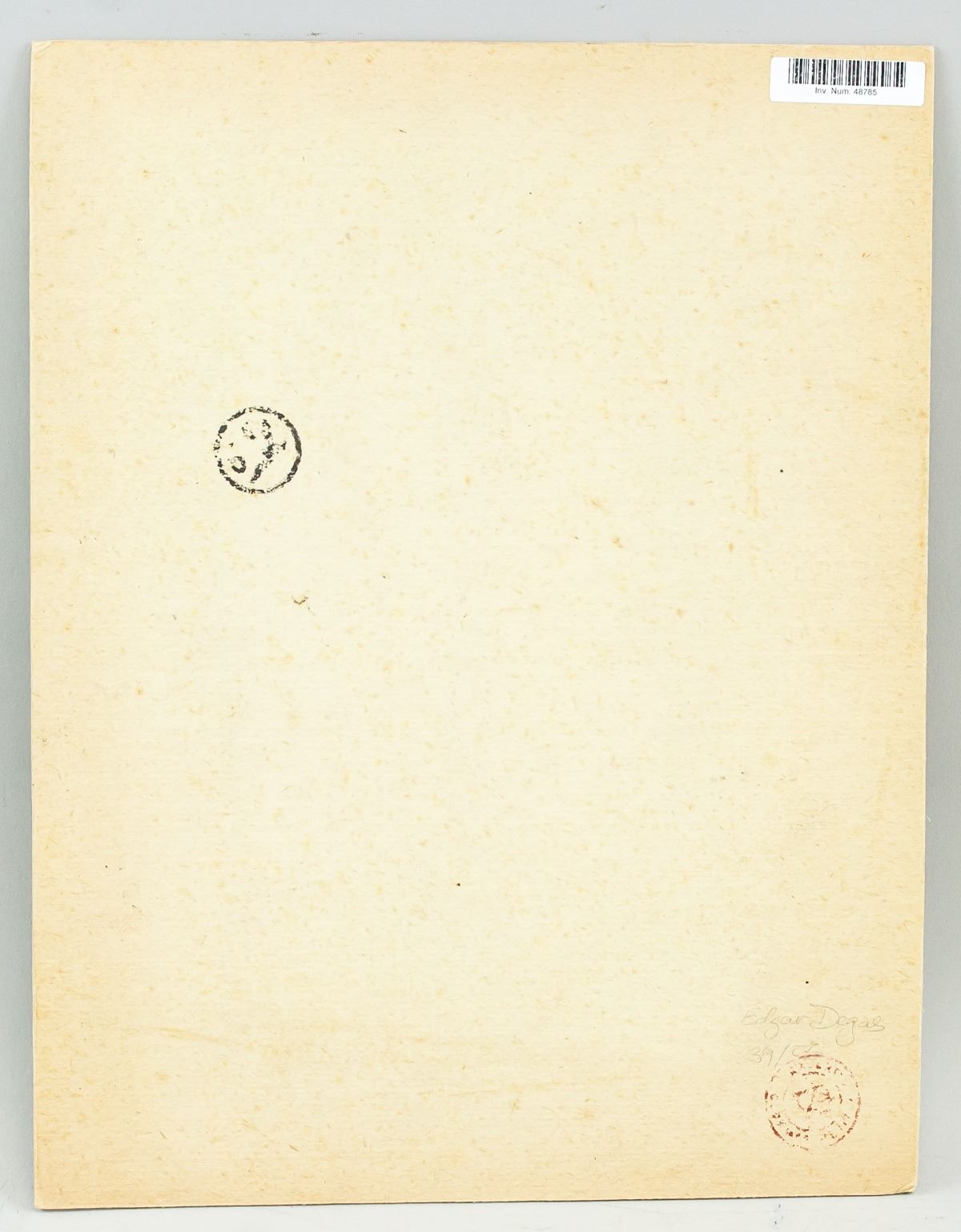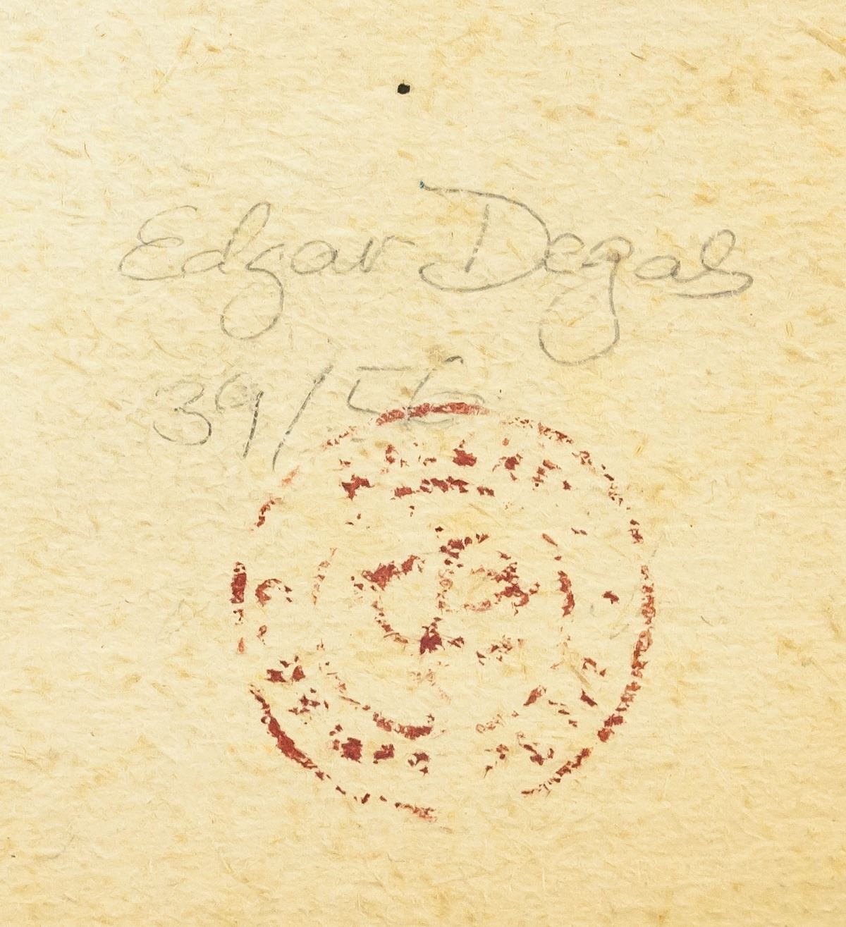 Mixed media on paper. Featuring a dancer. Signed Degas on the lower left corner. Stamped and inscribed in pencil Edgar Degas 39/56 on verso. 33.5 x 26 cm (13.25 x 10.25 in). PROVENANCE: This lot carries limited provenance from an Upper New York estate and is being as-is