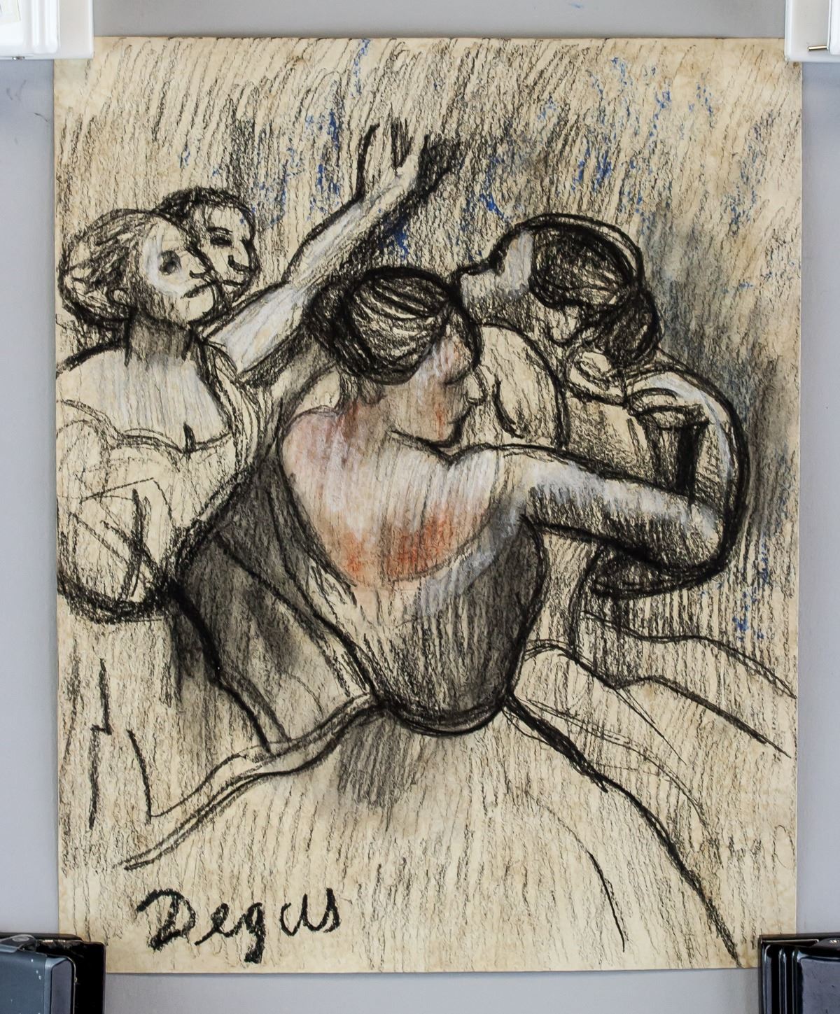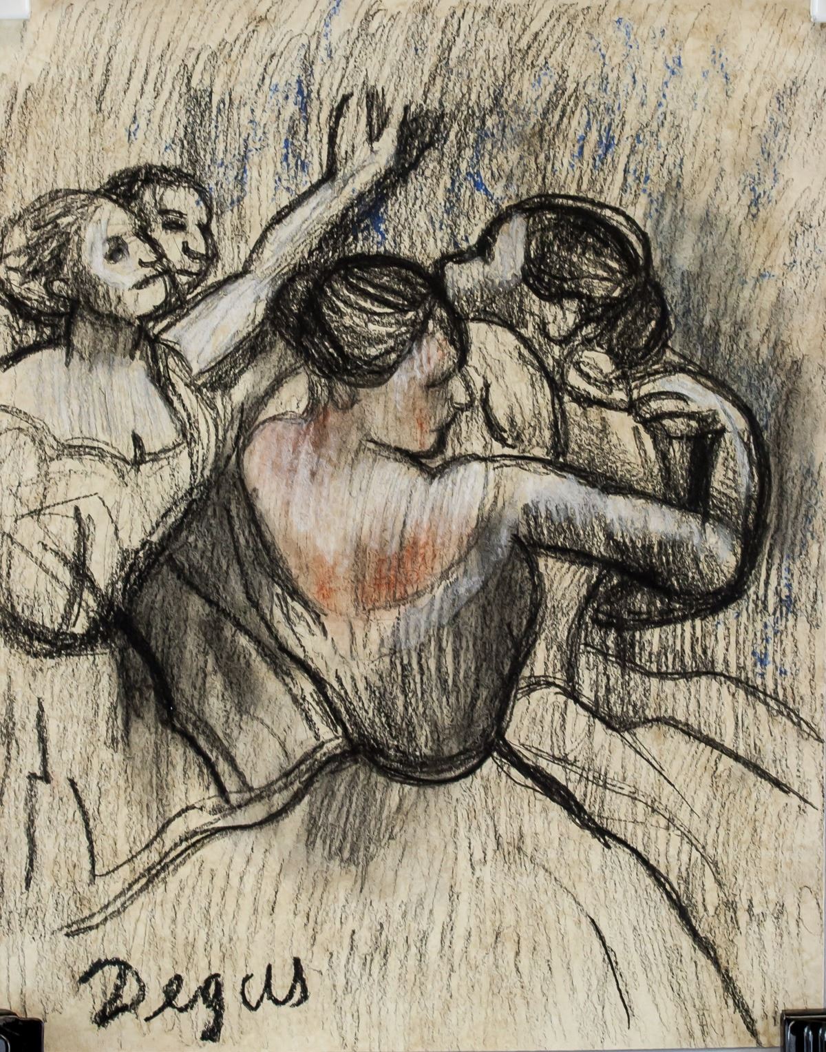 Pastel on paper. Featuring a portrait of four dancers. Signed Degas on the lower left corner. Stamped illegibly and inscribed in pencil ED.8 on verso. 25 x 20 cm (10 x 7.8 inches). PROVENANCE: Southern Ontario estate