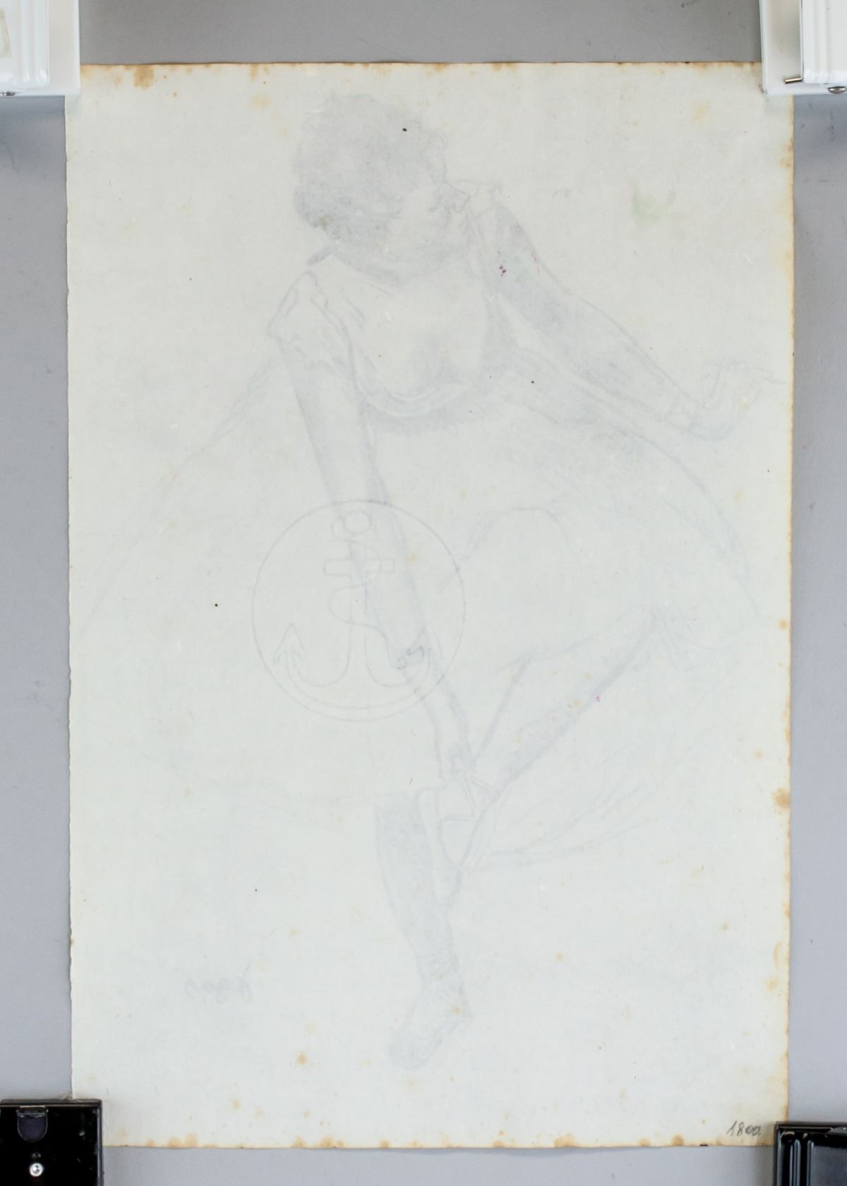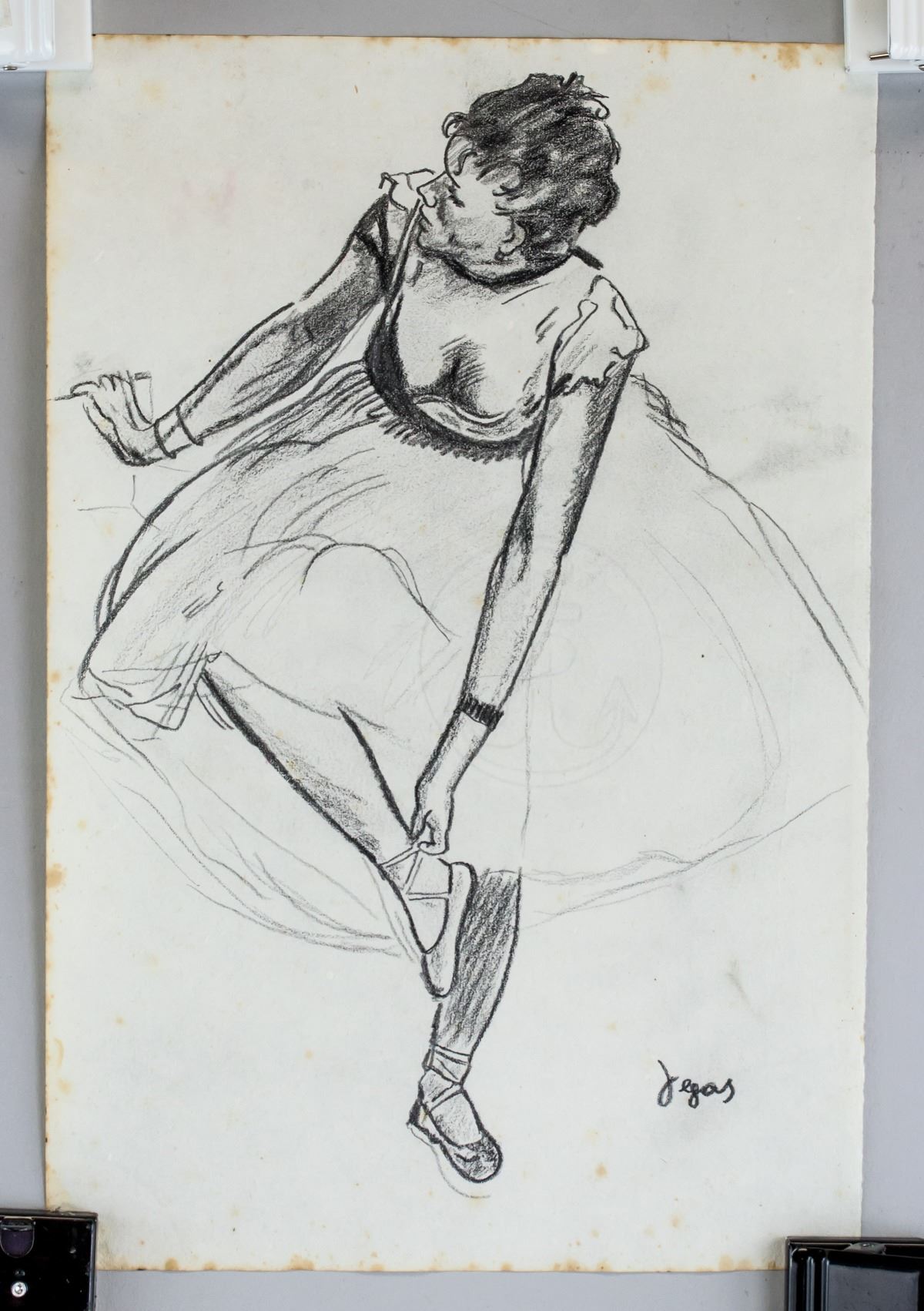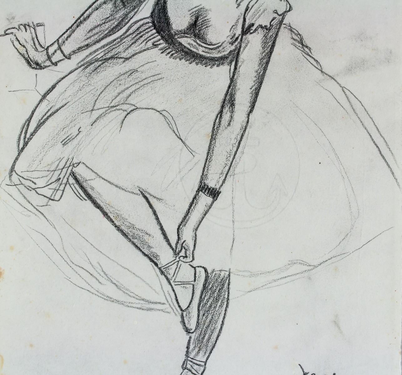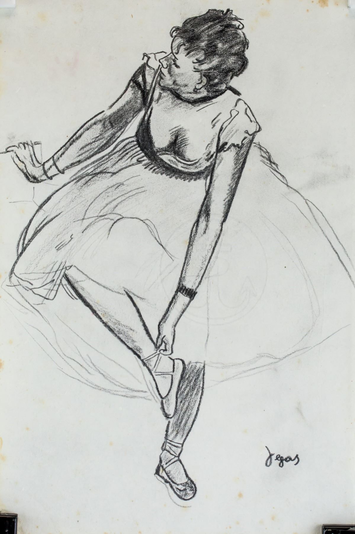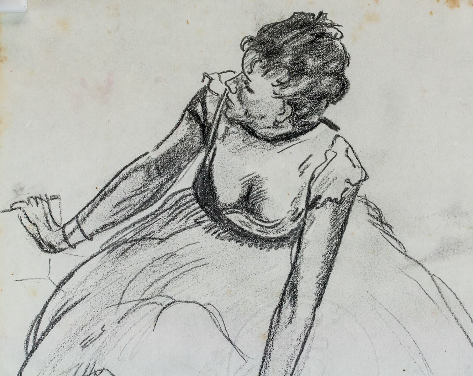 Pencil on paper. Featuring a portrait of a dancer. Signed Degas on the lower right corner. Inscribed 1800 on the lower right corner, verso. 30 x 20 cm (11.8 x 7.9 inches). PROVENANCE: Southern Ontario estate