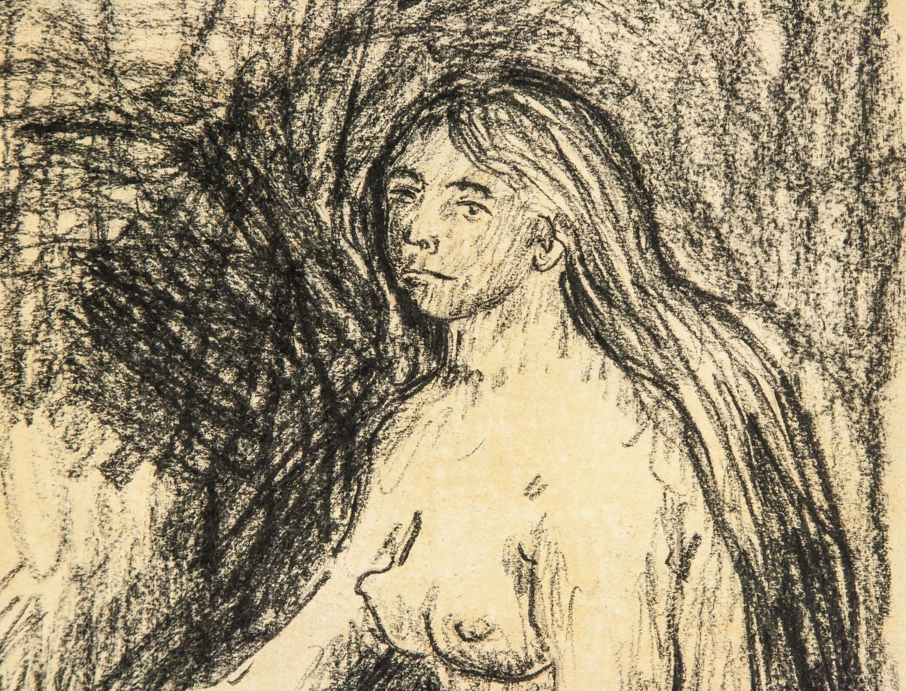 Charcoal on paper. Featuring portrait of a long hair girl. Signed and attributed to Pierre-Auguste Renoir (French 1841-1919). Signature on lower left corner. Stamped on verso. 11.8 x 7.9 inch (30 x 20 cm). Pierre-Auguste Renoir was a French Impressionist painter whose eye for beauty made him one of the movement's most popular practitioners. He is best known for his paintings of bustling Parisian modernity and leisure in the last three decades of the 19th century. Though celebrated as a colorist with a keen eye for capturing the movement of light and shadow.