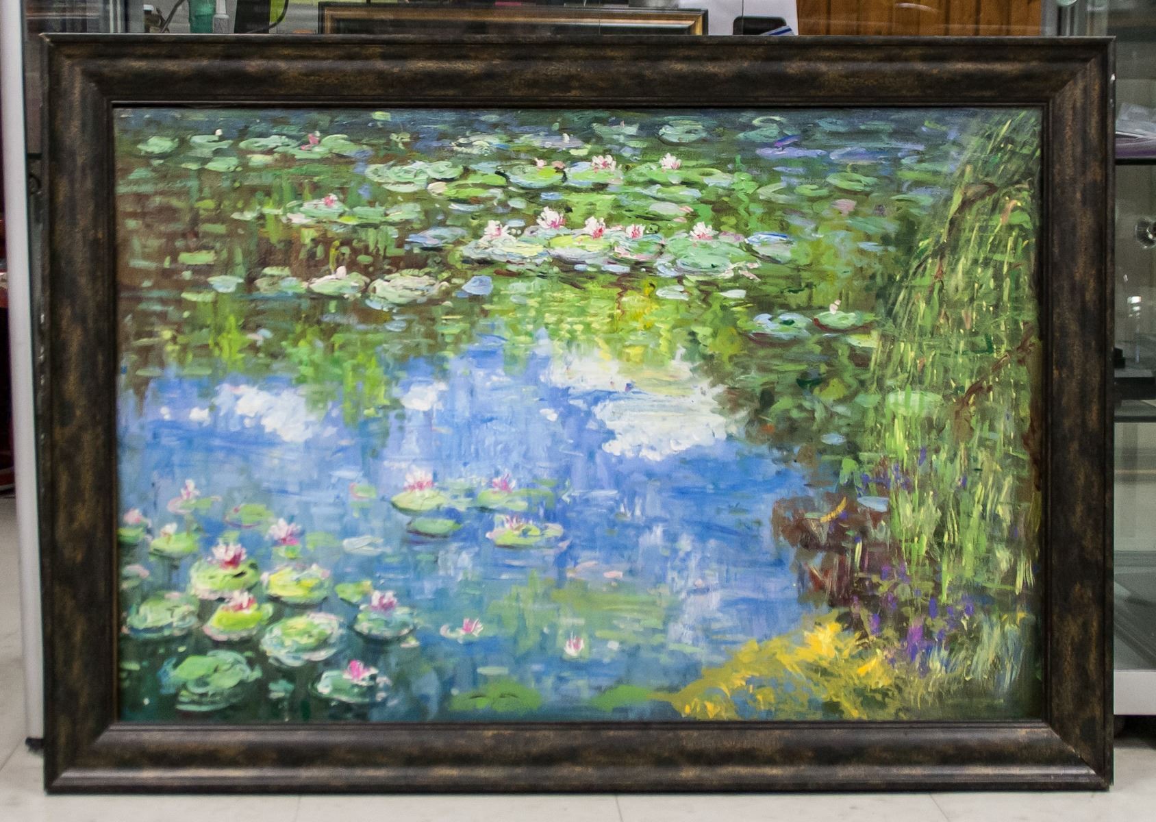 Oil on canvas painting. Style of Claude Monet (French, 1840-1926). 61.5 x 91 cm (24.2 x 35.8 inches).