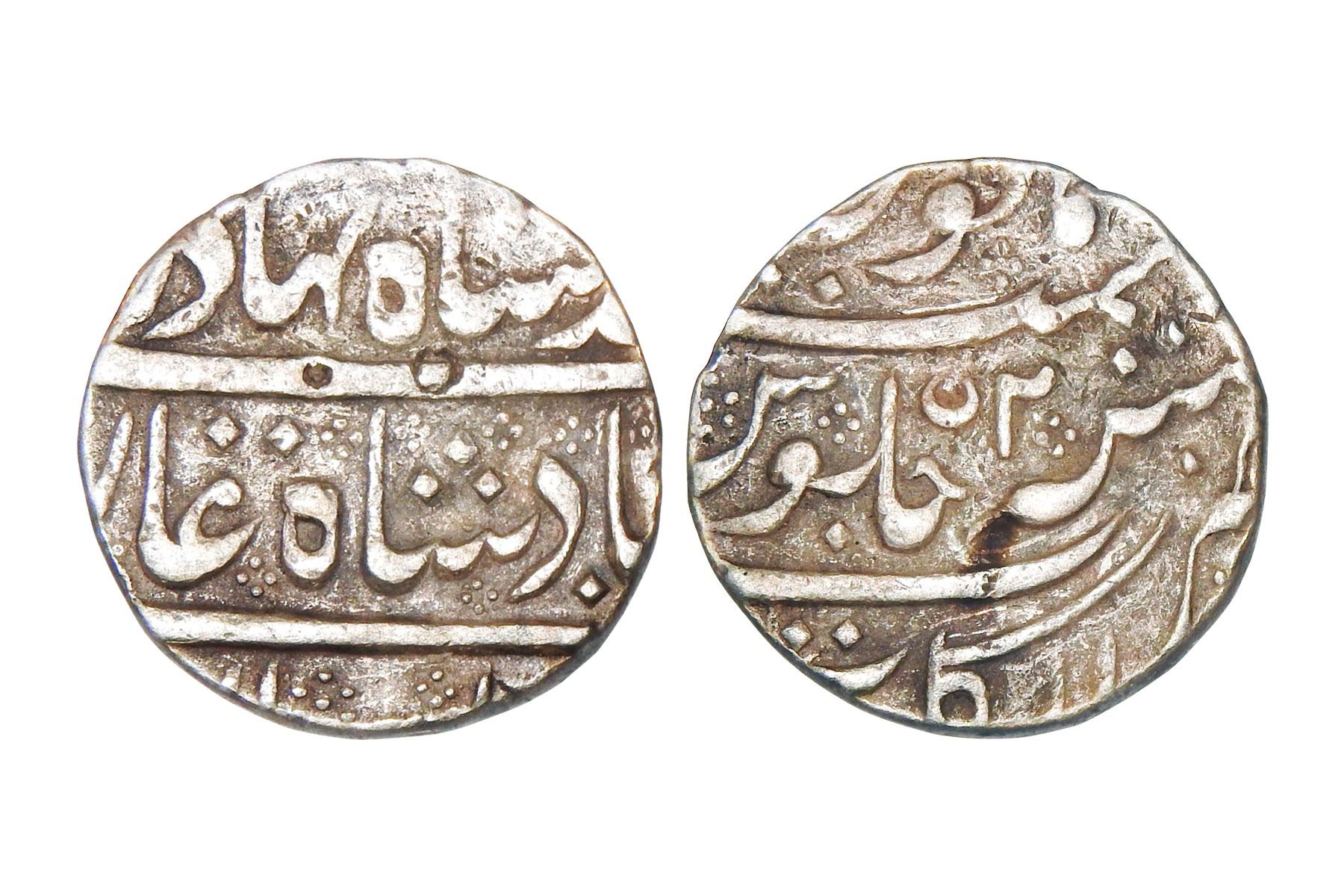 French India – Silver rupee, in the name of Ahmad Shah Bahadur, Pondicherry mint with pseudo-mint name Arcot, RY 2, crescent to the left of RY, KM 8, 11.30 grams. Very Fine, Scarce.