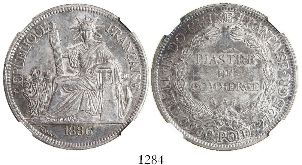 French Indo-China, 1 piastre, 1886-A, encapsulated NGC AU 55.