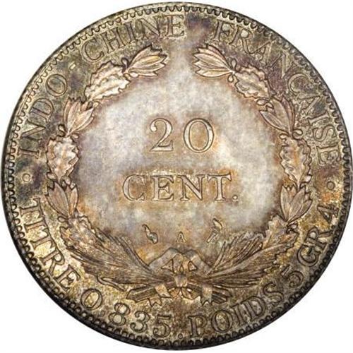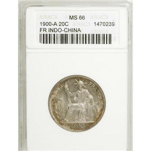 <B>French Colonial 20 Centimes 1900A,</B></I> KM10, MS66 ANACS, superbly toned, a true Gem example with instant eye appeal.<BR><BR><b>Shipping:</b> Coins & Currency (<a target="_blank" href="http://www.heritageauctions.com/common/shipping.php">view shipping information</a>)