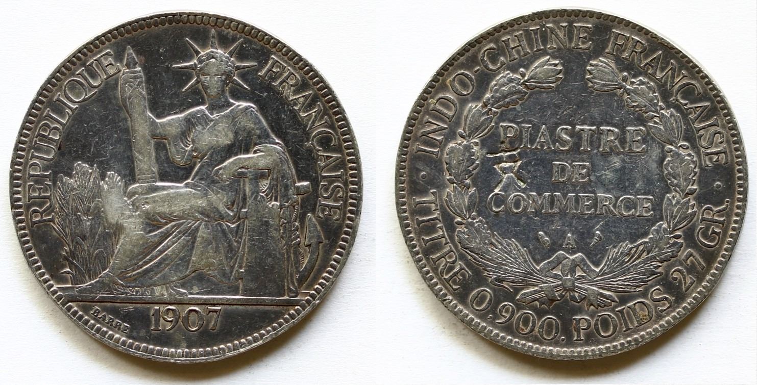 French IndoChina; 1907-A Piastre KM5A.1 - Chinese chopmark reverse -Lightly cleaned.