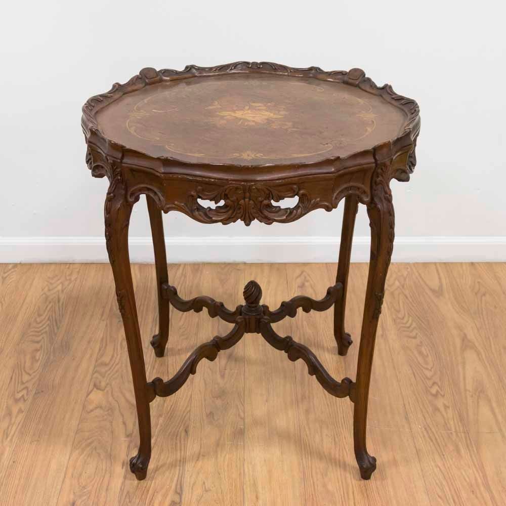 Floral inlay. Approx. 29" H x 25 1/2" diameter.