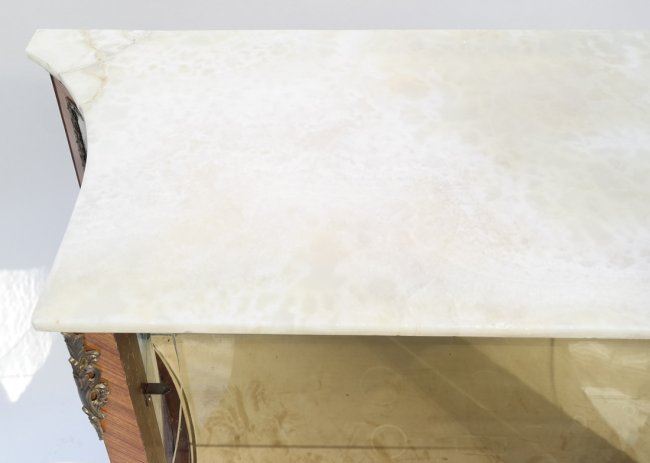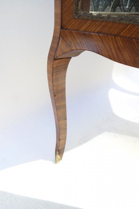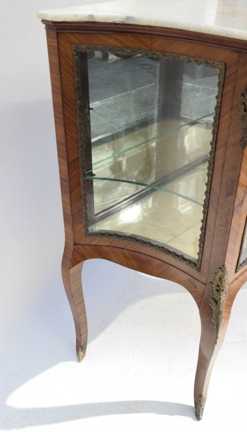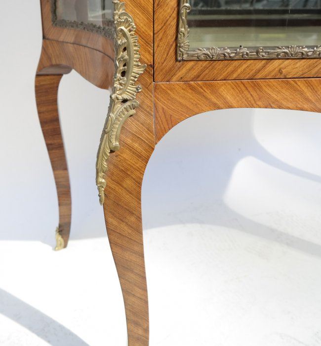Louis XV-style satinwood one-door cabinet with ormolu mounts. [40 1/2" W x 16 3/4" D x 40" H]. In good condition.