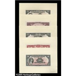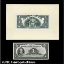 <B>French Issue of 1935 Proofs Choice Crisp Uncirculated.</B></I><BR>This is the French counterpart to the above lot. It also consists of separate face and back proofs on card stock (except where noted). The 1935 proofs are - $1 (face on paper stock), $20, $25, $50, $100 (face only), $500, and $1000; Charlton BC-2, BC-10, BC-12, BC-14, BC-16, BC-18, and BC-20. Penciled control numbers grace the back of these proofs, too, while the $20 face has the added notation in pencil, "imperfect." Included are eight contemporary portrait and vignette cards by the CBNC that also share common themes with the proofs in this lot. This is another historically significant lot for the Canadian collector.<BR> 22 items Lot:15516