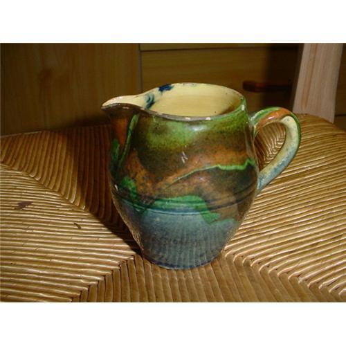 This charming French Jaspee pitcher jug from Savoie, dating around 1950?s, with its different colors (green, brown, blue).