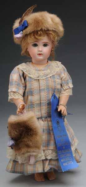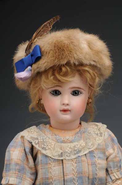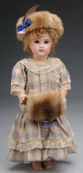 Description Ca. 1880. Bisque socket head incised "Steiner Paris Fre A-9". Blue paperweight eyes, multi-stroked eyebrows, pierced ears, closed mouth (light nose rub), original wig and Steiner cardboard pate. Marked Bebe Steiner Le Petit Parisien on body (fingers repaired). Vintage cotton undies and plaid cotton dress from old fabrics, no shoes or socks. Condition (Excellent). Size 16" T.