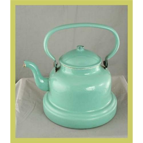 <tr><td>Title:French Kitchenware Kettle Enamel Green</td></tr>
