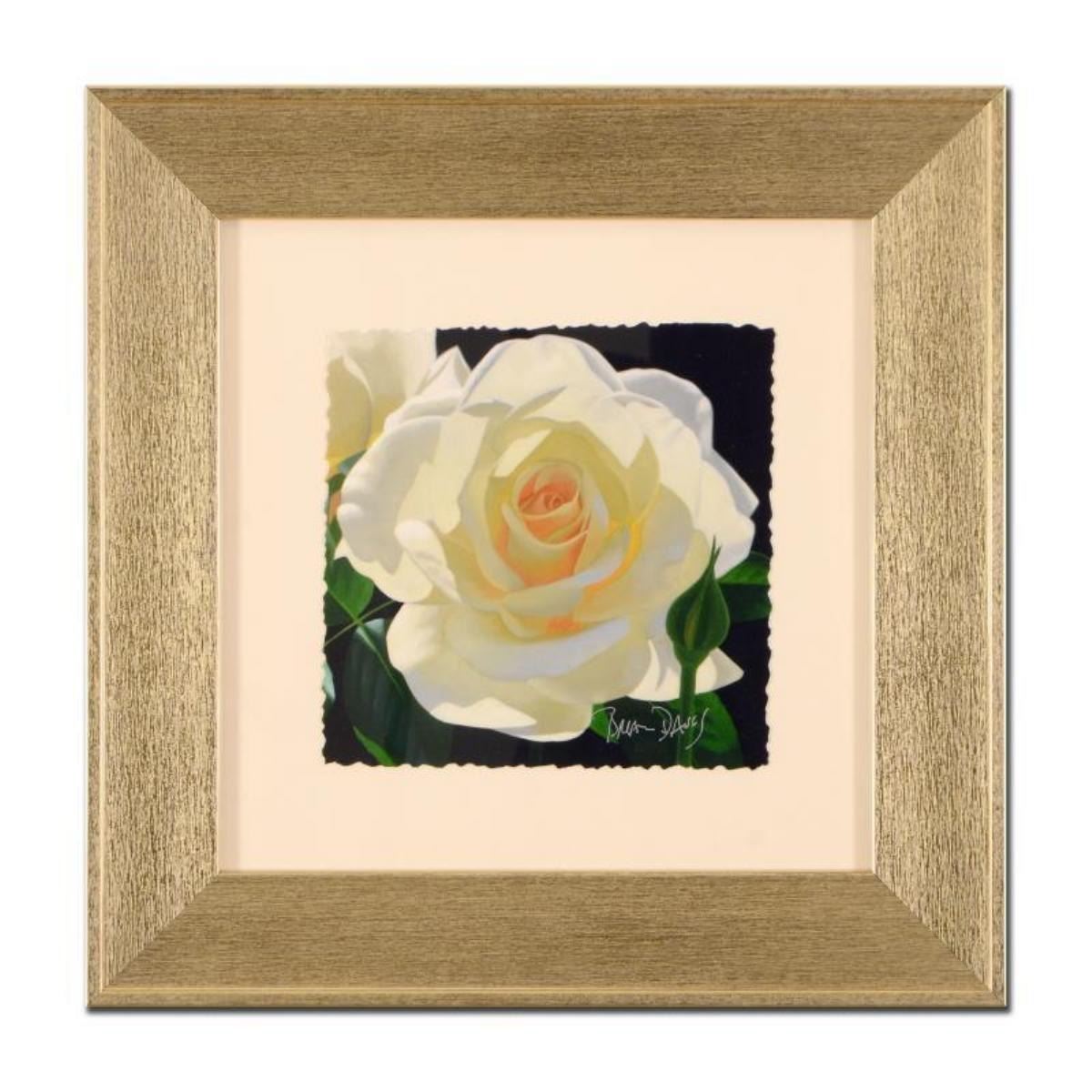"French Lace with Bud" is a limited edition giclee on paper by Brian Davis. This piece is custom framed and comes with a fine art book celebrating Davis' floral collections. Both the book and print are numbered and hand signed. Includes Letter or Authenticity. Measures approx. "16 x 16" (frame); 8" x 8" (image). Book measures approx. 10" x 11."