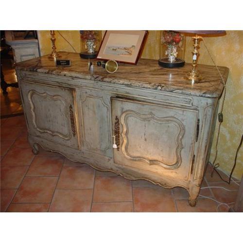 This is a beautiful Louis XV period buffet from France. It is painted and has a faux marble top. There is some chipping of the paint, but this is expected with such an old piece.