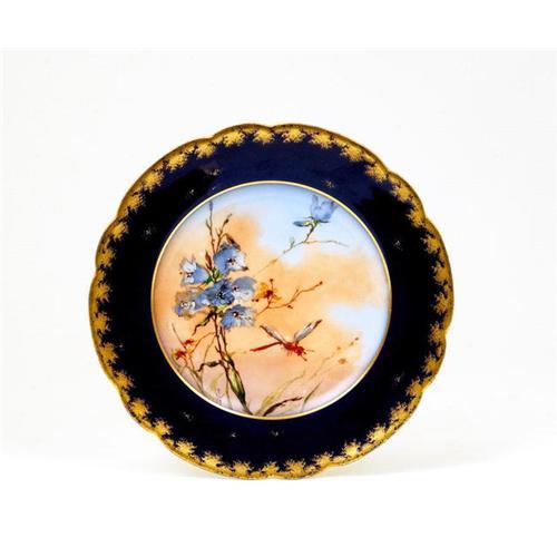 <table width="100%" border="0" cellspacing="0" cellpadding="4"><tr><td><em> </em></td></tr><tr> <td width="100%"> Old French Haviland Limoges Hand Painted Cobalt Blue Plate with Foral Pattern Marked "Haviland and Company Limoges"