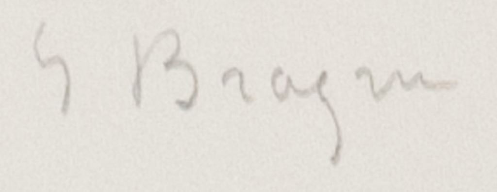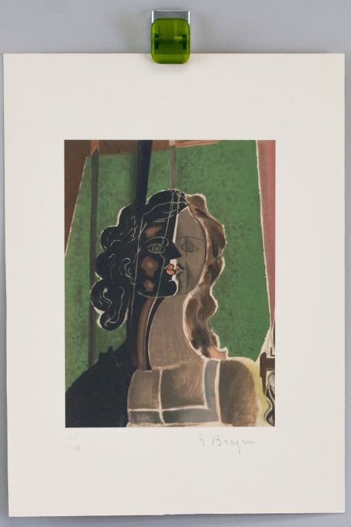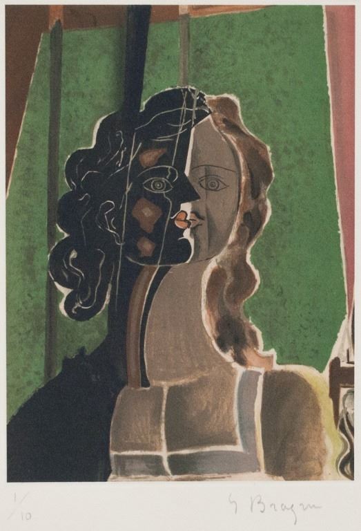 Linocut on paper. Featuring portrait of a woman. Signed "G Braque" to the bottom right. "1/10" inscribed to the bottom left. Image size: 18 x 13 cm (7.0 x 5.1 inches). Sheet size: 29 x 21 cm (11.4 x 8.3 inches). Provenance: This lot carries limited provenance from a Southern Ontario estate