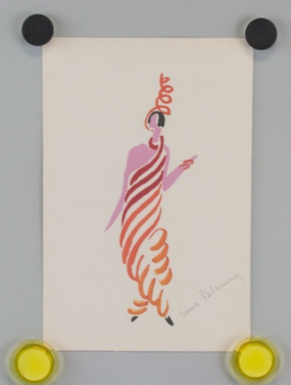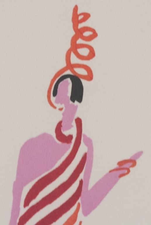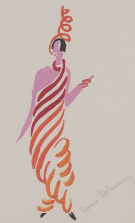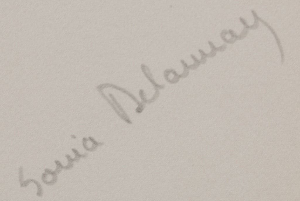 Lithograph on paper. Featuring portrait of a figure with body composed od swirls. Their head and arms are pink. Signed "Sonia Delaunay" to the bottom right. 24.5 x 16.5 cm (9.6 x 6.5 inches)