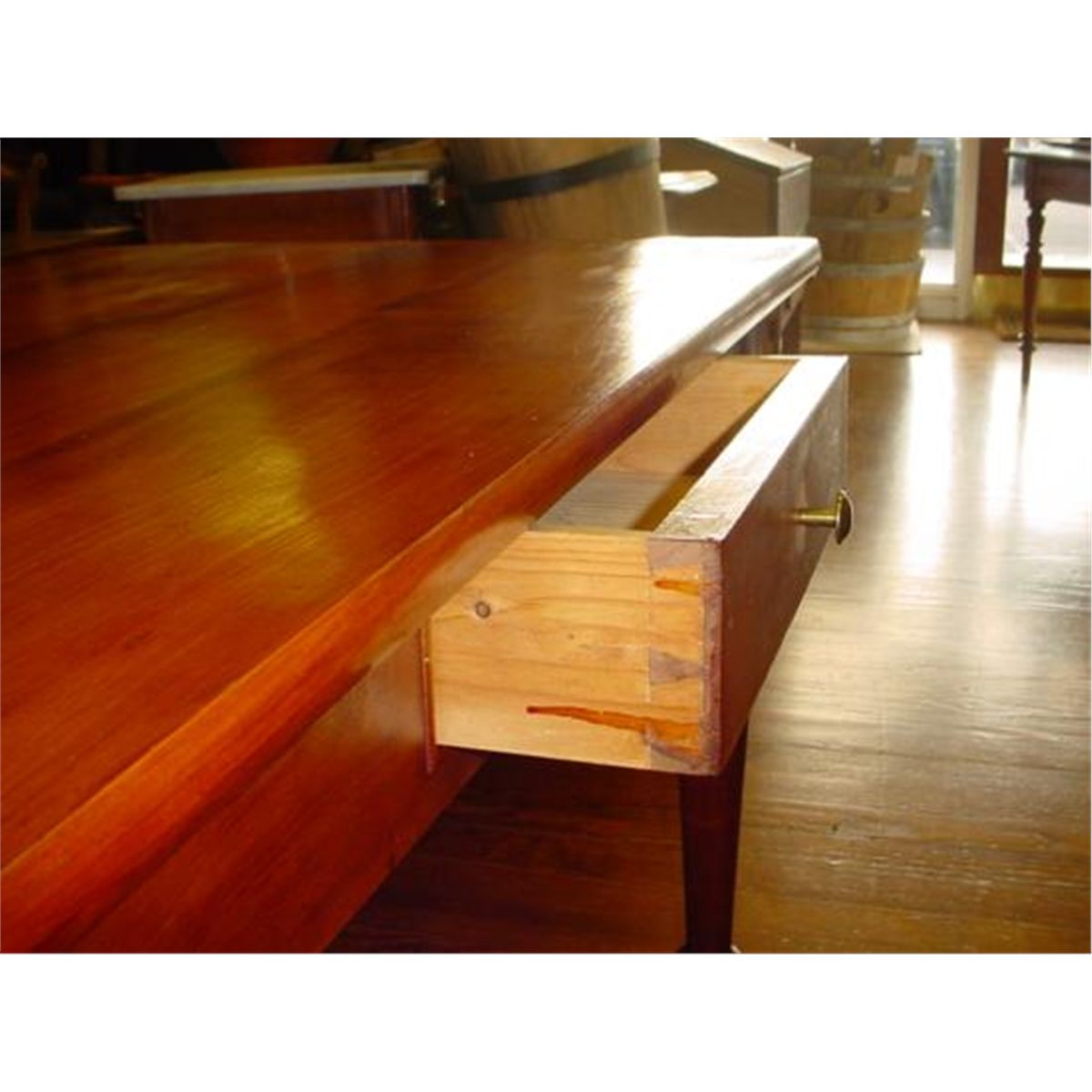 VERY NICE French Farm table-desk, Louis Philippe period with one drawer, in very good condition (Circa 1850). This piece was made of fruit wood by a French cabinet maker. You can use this piece as a TABLE or as a VERY NICE DESK! In very good condition and gorgeous patina! For the shipping...don't worry, we ship from Texas (not from France)!f-30.25/ w-46.5/ d-29.25