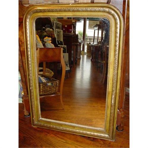 Very valuable French Louis Philippe period (circa. 1840) mirror in good condition. Original glass. The frame was made of wood and plaster with original gold leaf.
