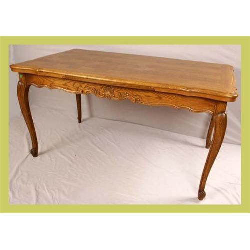 </STRONG>Title:  1970 French   Louis XV Dining Table   Refectory Carved</STRONG><P>Item #: 1-35A3-0</P><P>Comment: Nice parquetry surface and pretty carvings make this a great piece! Two built-in leaves pull out for extra space!</P><P>Condition: Some wear to leaves where they pull out, but overall very good condition!</P><P>Dimensions (in.):  30H 58L 35W   Leaves 35</P><P>Age (ca.): 1970</P><P>Origin: France</P><P>Style: Louis XV</P><P>Material: Oak</P><P>Object: Dining Table</P><P>Subject: Refectory</P><P>Additional Detail 1: Carved</P><P>Additional Detail 2: Parquetry</P><P>Piece Type: Tables</P>This piece is eligible for FREE SHIPPING within the Continental United States. Shipments generally take between 2-10 weeks, depending on shipping company used.  Shipments measuring less than (inches) 30 x 47 x 84 and weighing less than 100 lbs per box or item may be shipped via Greyhound Buslines, at the discretion of EuroLux Antiques. Shipments using Greyhound will require the customer to pick up the piece at their nearest Greyhound Bus Station (within 40 miles of customer's home). All shipments include Insurance. Additional assembly, extra packing or crating charges may apply in limited instances. Please email for details.</P> ...